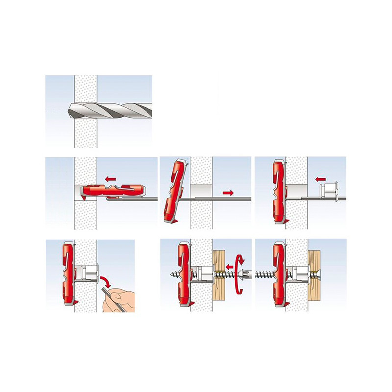 ·sklopný prvok hmoždinky sa vyklopí vzadu za doskou automaticky a zaručí nosnosť