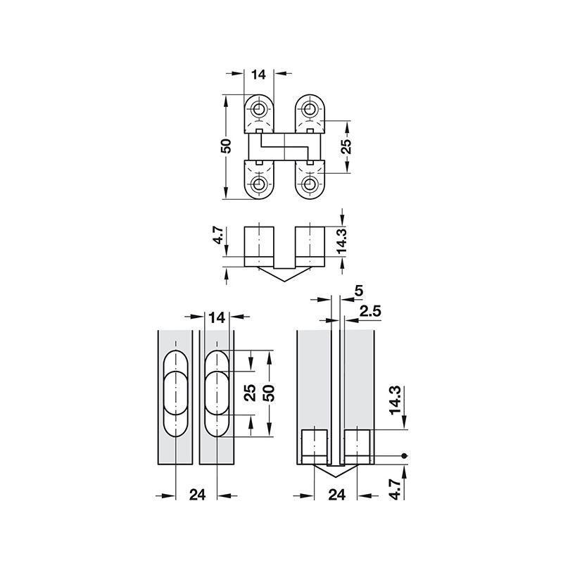 Pre hrúbku dverí: 12-19 mm Nosnosť: 8kg/pár Uhol otvorenia :180°