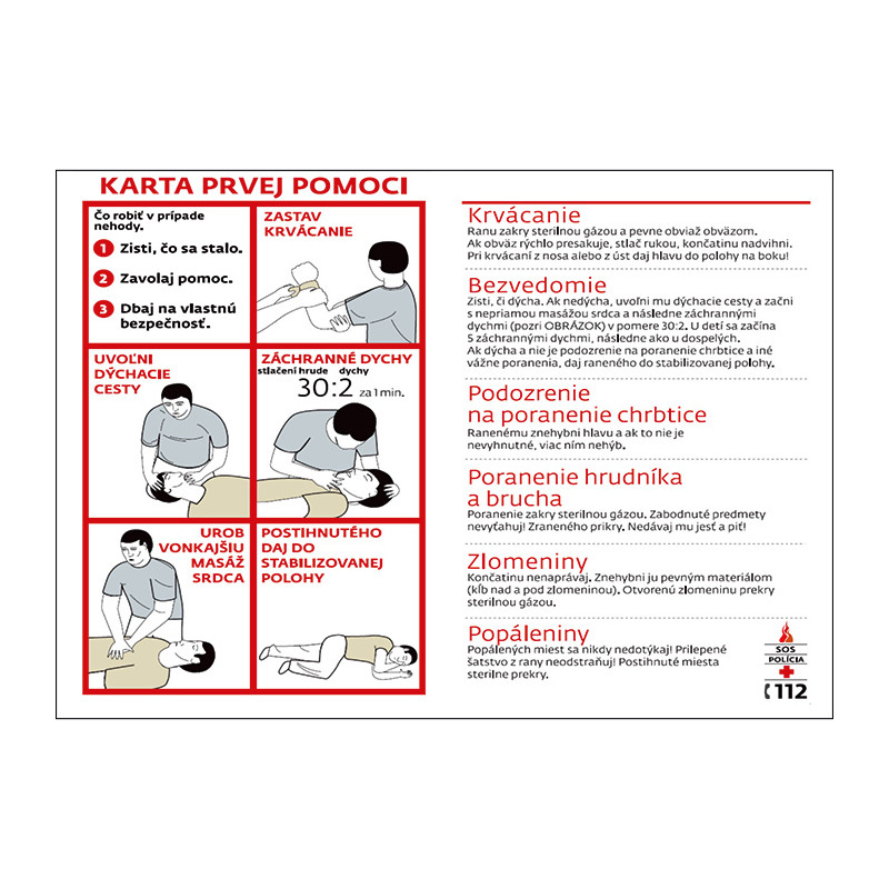 Karta prvej pomoci. Formát A5.