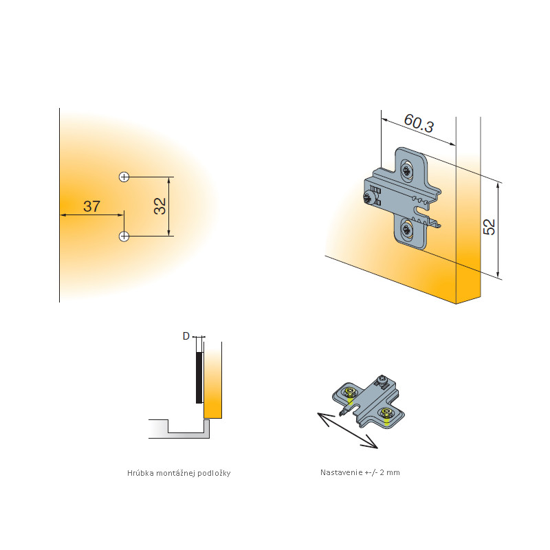 Montážna podložka k závesom TITUS "slide-on". D=0 mm
