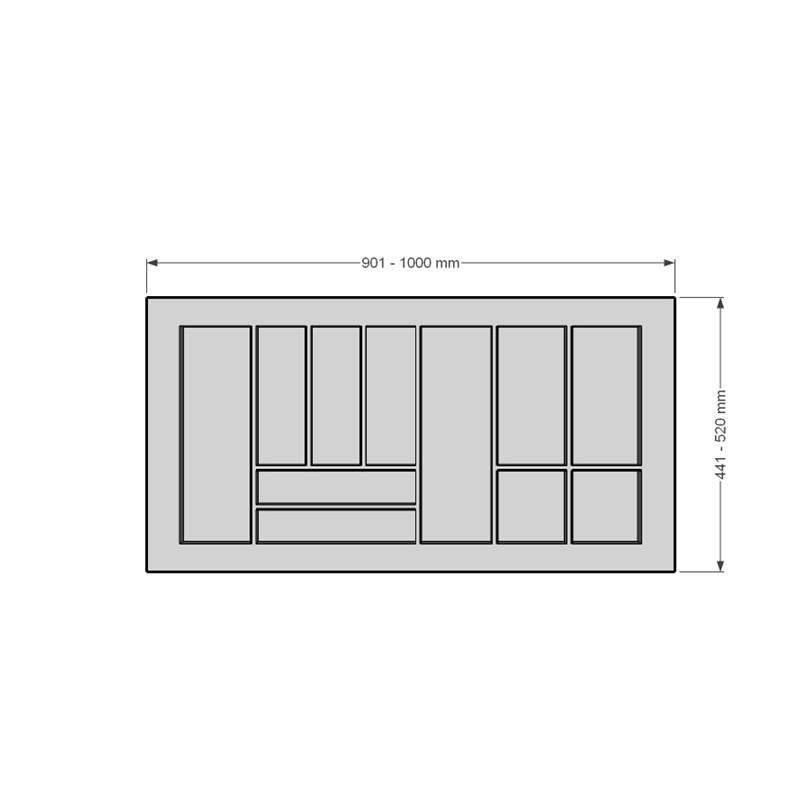 Univerzálny plastový príborník vysokej kvality, ktorý je možné orezaním jednoducho prispôsobiť požadovanému rozmeru.