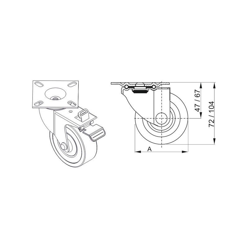 Otočné koliesko s brzdou