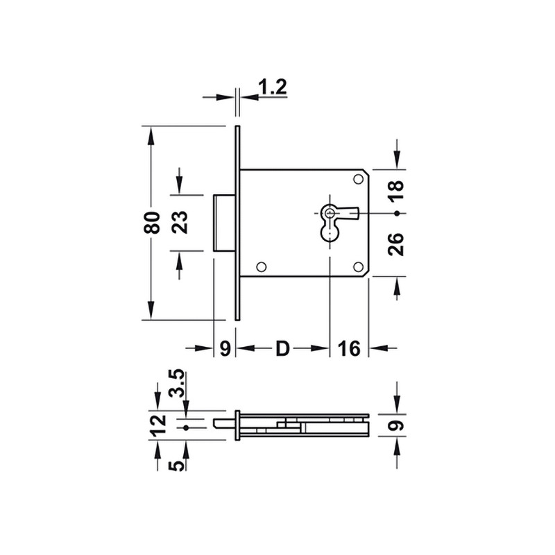 Zámok zadlabávací. D=35mm Zamykanie môže byť podľa potreby (vpravo alebo pre zásuvku).